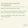 HOT - jasmine honey orange blossom sweet citrus juicy texture nice balance m-h sweet m acid cantaloupe
