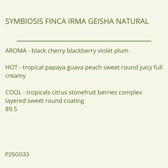 SYMBIOSIS FINCA IRMA GEISHA NATURAL 1kg @ $100/kg