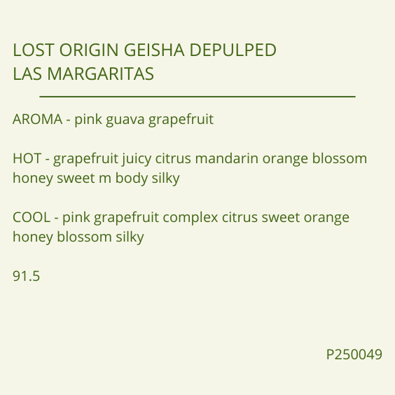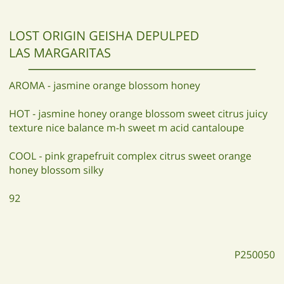 LOST ORIGIN LAS MARGARITAS GEISHA DEPULPED 1kg @ $250/kg