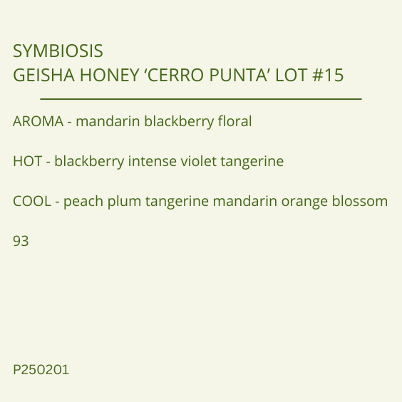 SYMBIOSIS CERRO PUNTA GEISHA HONEY 1kg @ $280/kg