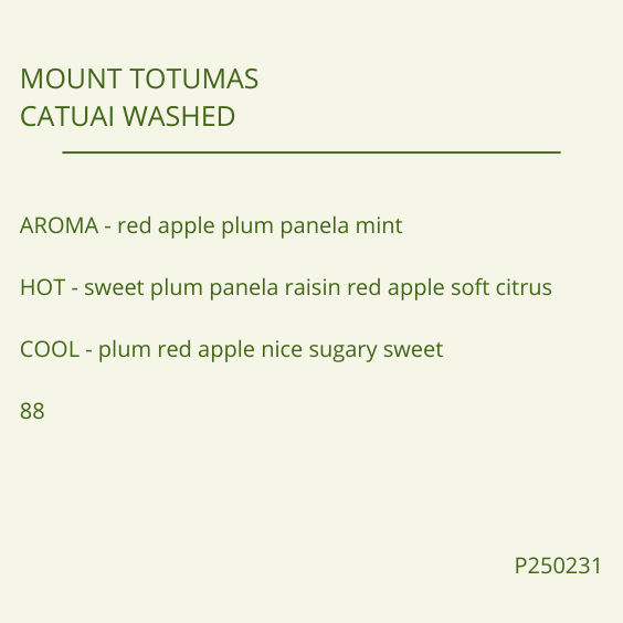 MOUNT TOTUMAS CATUAI WASHED DE LA ROSA 10kg @ $55/kg