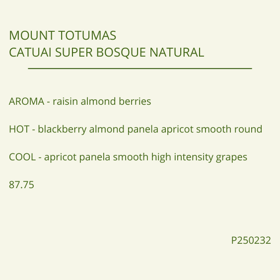 MOUNT TOTUMAS CATUAI SUPER DUPER BOSQUE 6kg @ $55/kg