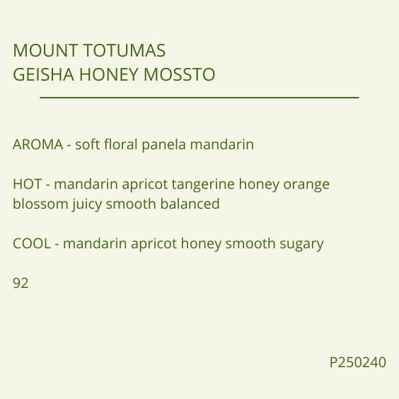 MOUNT TOTUMAS GEISHA HONEY MOSSTO 4kg @ $330/kg
