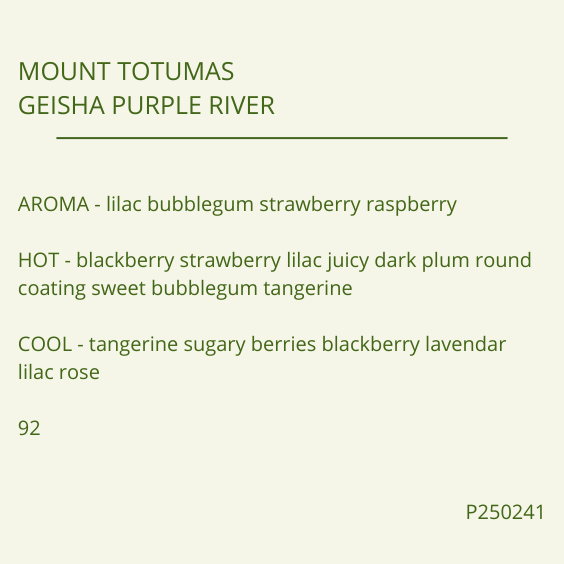 MOUNT TOTUMAS GEISHA PURPLE RIVER 5kg @ $650/kg