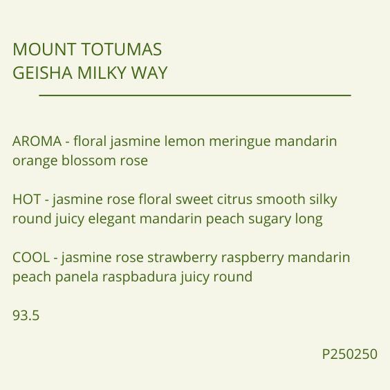 MOUNT TOTUMAS GEISHA MILKY WAY 5kg @ $650/kg