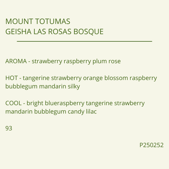 MOUNT TOTUMAS GEISHA LAS ROSAS BOSQUE 2.6kg @ $500/kg