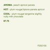 HOT - plum nougat liptons panela apricotCOOL - plum nougat tangerine milk chocolate